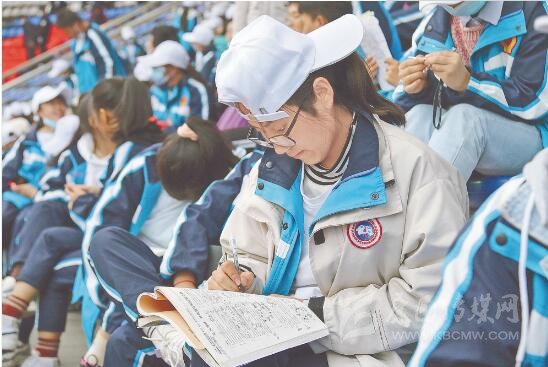 早上7點(diǎn)30分左右,記者來到這片特殊的學(xué)生方陣時(shí)發(fā)現(xiàn),不少學(xué)生把課本帶去了現(xiàn)場,正趁著候場間隙埋頭苦讀。據(jù)康定中學(xué)老師李虓偉介紹,同學(xué)們是排練隊(duì)伍中進(jìn)場時(shí)間最晚、排練時(shí)間最短的一個(gè)團(tuán)隊(duì),“在不耽誤課程的情況下,孩子們將所有能抽出來的時(shí)間全部奉獻(xiàn)給這次演出了,所以每次排演總是格外地認(rèn)真,絲毫沒有怨言,為了節(jié)約時(shí)間,同學(xué)們還利用訓(xùn)練期間短暫的休息時(shí)間,埋頭溫習(xí)課本、做作業(yè)。”