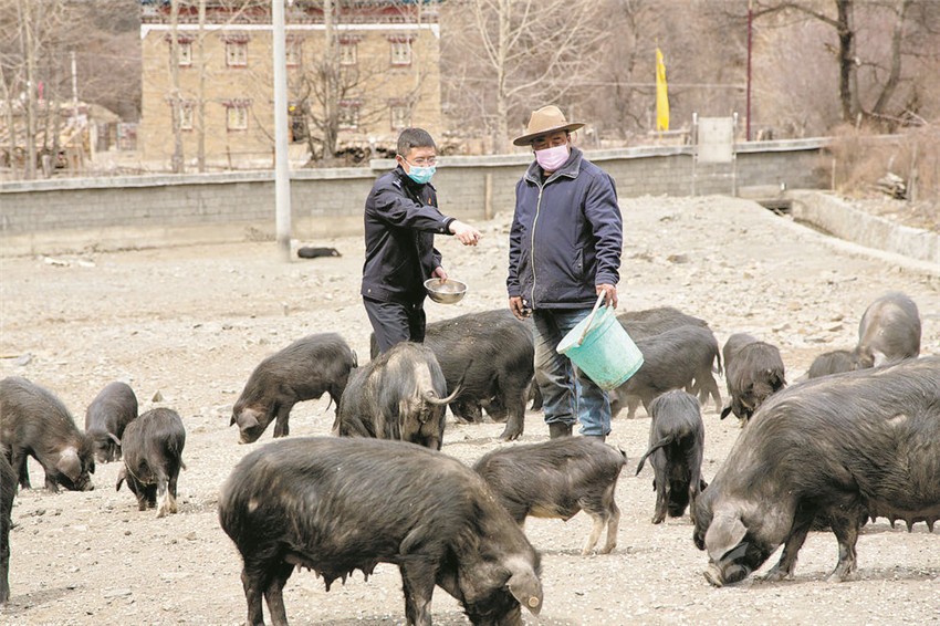 “‘喝泉水、吃山珍’長(zhǎng)大的藏香豬,很受市場(chǎng)的歡迎。我們的藏香豬一出欄就引來眾多企業(yè)搶購(gòu)?!睗扇释呒χf,“原來我們只是會(huì)養(yǎng)豬,現(xiàn)在則是‘慧養(yǎng)豬’,一字之隔,千差萬(wàn)別。駐村工作隊(duì)請(qǐng)來的畜牧專家真是幫了大忙。”