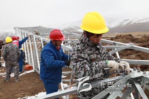 石渠縣海拔高,長冬無夏,空氣含氧量僅為成都平原的45%,電力建設面臨著“高原高寒缺氧、生態(tài)環(huán)境脆弱、凍土區(qū)沼澤區(qū)施工”等世界性難題。在這里走路稍微快一點都要大口喘氣,更何況在高山雪地上施工,搬運建材,其施工難度可想而知。石渠至洛須110KV工程是國網(wǎng)成都供電公司承擔“電力天路”工程項目中唯一一條110kV電壓等級線路工程,是連接石渠變電站和在建的110kV洛須變電站的主要電力通道,線路全長為64.268km,新建鐵塔187基,沿線海拔高度為3300~4800m,線路多在雪山脊梁及斜坡走線。4月的石渠高原,依然是冰天雪地,寒風呼嘯,在石渠至洛須110KV線路87基塔基澆筑現(xiàn)場,這里海拔4500多米,然而這里卻是一片熱火朝天的場景,一頂頂黃色安全帽下,急促呼吸冒出的熱氣讓每一個人的面目更加模糊?,F(xiàn)在內地正是春暖花開,春意盎然的季節(jié),而我們的施工現(xiàn)場確實冰天雪地,為了讓廣大農牧民早日用上電,四川電建工人們克服高寒、缺氧等惡劣自然條件,正在抓緊施工。110kV線路有的建設段施工人員靠相互扶持摸索上山,有的施工點一個來回要走6個多小時,材料、工器具都必須靠驢隊及索道運輸。為了搶工期節(jié)約時間工程建設者克服嚴重的高寒缺氧等惡劣的自然條件吃住在雪山上,累了、呼吸困難時吸口氧,渴了吃一把身邊的“雪糕”。到今年4月30日,“電力天路”石渠境內工程進度已完成工程總投資的40%。