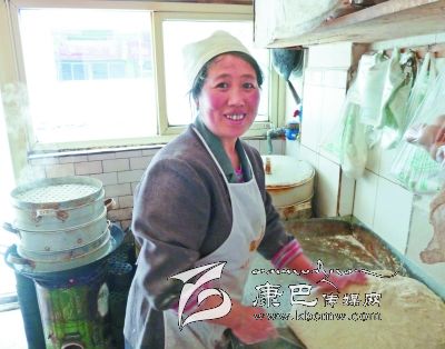 姜瓊芳是雅安漢源人,十幾年前就和親戚一起來康定打工,她賣過菜、打過零工,2010年,有了一點(diǎn)積蓄的姜瓊芳開起了一家小吃店,專賣早餐,包子、花卷、饅頭、酥油茶、稀飯,雖是小生意,可也做得紅紅火火。因?yàn)榻偡紴槿藷崆?、愛幫忙,做的各類早點(diǎn)味道好、分量足,所以每天早早地就賣完了,還有很多老顧客早上就要來訂購還沒做好的包子、饅頭。