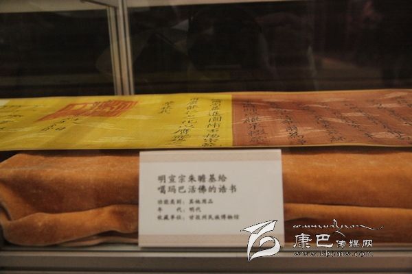 據(jù)介紹,明成祖永樂十一年封誥為國(guó)家一級(jí)文物,系明永樂帝成祖朱棣于明永樂十一年(1413)敕封噶瑪噶舉楚布寺第二世司徒活佛曲吉降村為“灌頂圓通妙濟(jì)國(guó)師”時(shí)頒賜。那是一份來自600年前的古老信息,也是一份見證中國(guó)千百年來民族團(tuán)結(jié)、祖國(guó)統(tǒng)一的誥文。誥文清楚的記述了“永樂盛世”中甘孜人民在華夏大家庭中的和諧與共,也把宣德年間明朝文化,經(jīng)濟(jì)繁榮階段中康巴文化的不可或缺緊密的聯(lián)系在一起。