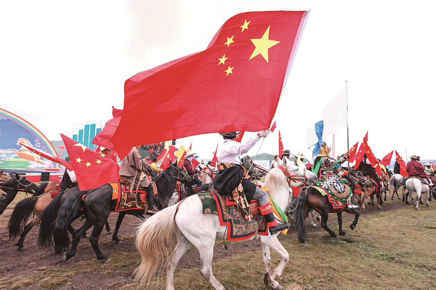 8月11日,色達(dá)縣扎青塘草原,沙場(chǎng)點(diǎn)兵,搭起連營(yíng)帳,作為“‘福地色達(dá)·金馬之邀’游牧文化遺產(chǎn)體驗(yàn)季”重頭戲的賽馬活動(dòng)讓人人沸騰。