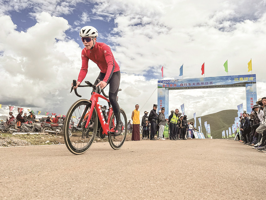 2023年8月11日,作為“福地色達(dá)·金馬之邀”草原游牧文化遺產(chǎn)體驗(yàn)季系列活動(dòng)之一的金馬草原自行車天路挑戰(zhàn)賽在格薩爾文化藝術(shù)中心鳴槍開賽。100多名來自全國(guó)各地的自行車專業(yè)運(yùn)動(dòng)員及自行車愛好者齊聚福地色達(dá),共赴一場(chǎng)別開生面的體育盛宴?!∫晃粎①愡x手激動(dòng)地說:“我是從湖北武漢過來的,第一次參加海拔這么高的比賽,感覺很好、很棒。一路風(fēng)景超美,美呆了!如果還有這樣的比賽,我一定會(huì)再來的!”