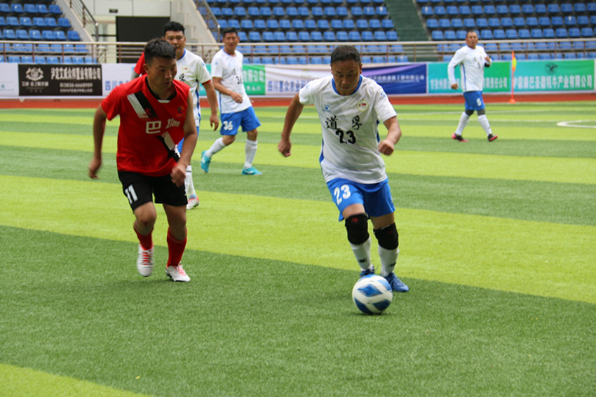 在下午的總決賽中,球場的氣氛被推向了最高潮,雖然小雨淅瀝,但球員和球迷的氣氛依舊不減,康定隊和甘孜隊都極力渴望突破重圍奪得桂冠,登上冠軍寶座。在上半場比賽中,雙方球員頑強拼搏,積極進攻,嚴(yán)密防守,為本屆運動會足球賽的最后一場比賽全力以赴。在屢次界外球與定位球之后,裁判哨聲響起,上半場比賽結(jié)束,比分仍然定格在0:0。