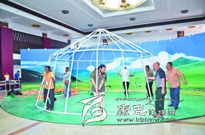 拾階而上,從序廳開(kāi)始每走一步都會(huì)心生蓮花,首先映入眼簾的是兩堵巨大的LED顯示屏,屏幕上滾動(dòng)播放著旅游宣傳片,清澈的藍(lán)天、綠綠的草地、農(nóng)牧民們淳樸的笑意,眼睛開(kāi)始跟著心靈旅行,而心的深處卻像長(zhǎng)出了一對(duì)靈巧的翅膀,振振欲飛。西廳的照片墻,除去未經(jīng)PS過(guò)的高原美景外,還展示了建州64年來(lái),甘孜兒女向上奮發(fā)的新面貌。由西廳出來(lái)至正廳,在跨進(jìn)門(mén)口的一剎那,便會(huì)被那頂蒙古包似的虎皮帳篷所吸住魂魄,流連、駐足、照相,它被人們傲慢地搭建在整個(gè)展廳最顯眼的位置,仿佛在箱底收藏了那么多年終于揚(yáng)眉吐氣。北京人是有眼福的,很多在甘孜州本土生活了幾十年的人都是第一次親眼見(jiàn)到這頂帳篷,所有的人都為之驚嘆,并好奇這頂帳篷背后的故事。而關(guān)于這頂虎皮帳篷的記載并不多,這頂帳篷原是屬于理塘縣“雍若本”人的,而“雍若本”人舊時(shí)為理塘毛埡的土司階層,由于他們的祖先是從青海游牧過(guò)來(lái)的部落,到現(xiàn)在都保留有流動(dòng)帳篷寺廟的風(fēng)俗,據(jù)專(zhuān)家們推測(cè)如此奢華威嚴(yán)的一頂帳篷可能是流動(dòng)的官府衙門(mén)。