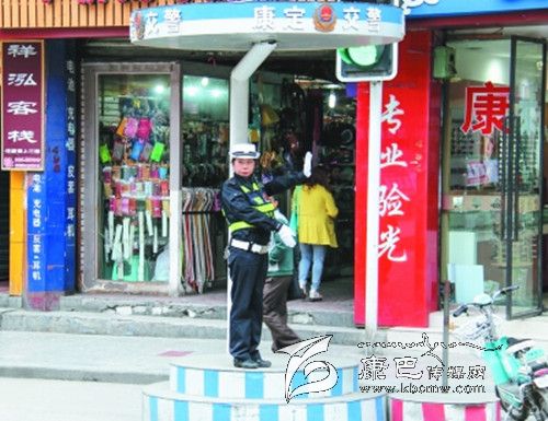 “川G*****,趕快開走,不要在公交站牌前???rdquo;,“那位騎摩托車的,速度慢一點,慢一點。”八點鐘,曹韓康的大喇叭聲準(zhǔn)時在群藝館十字路口響起。