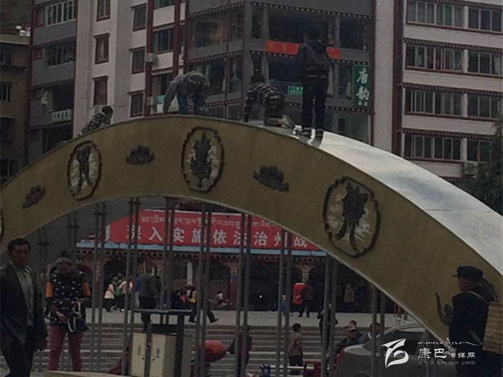 在康定劇場前面的廣場上,每天傍晚,廣場舞大叔大媽都準(zhǔn)時前來報到。孩子們則在人群中玩耍。7歲的陽陽(化名)被奶奶帶著來到廣場上學(xué)習(xí)滑旱冰,滑著滑著小伙伴出現(xiàn)了。脫掉冰鞋,陽陽和大家一起開始在“康定情歌”歌譜造型的漢白玉雕塑上攀爬。奶奶則在廣場另一端和老友擺龍門陣,根本無暇顧及。“征服”了“康定情歌”以后,陽陽和伙伴們繼續(xù)“征服”康定劇場臺階前的大塊漢白玉雕塑。“趕快下去,這些娃娃真沒得家教!”一位愛管閑事的中年人制止了孩子們的“不文明”行為。他離開后,陽陽再次奔向漢白玉雕塑……