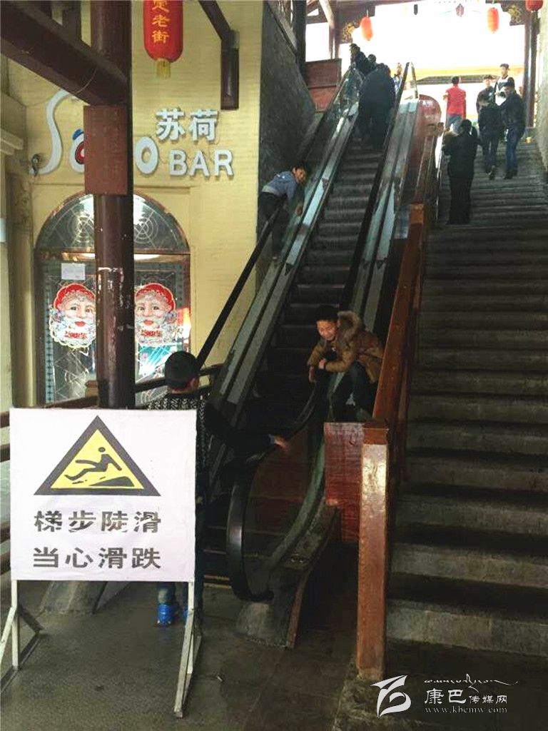 “唰,唰,唰”一群10歲出頭的孩子們從停運(yùn)電梯的扶手上飛速滑下,這是記者在康定“溜溜城”商業(yè)步行街下方出入口處電梯看到的一幕??匆娪浾咴谂恼眨W(xué)四年級的小亮(化名)絲毫沒有慌亂,嫻熟的翻越動作表明這里是他和朋友們的常來之地。記者目測電梯長度約有60米左右,上下落差較大,在電梯扶手上玩耍的孩子極易受傷。小亮和朋友們卻不以為然:“這個梯子好像游樂園里的激流勇進(jìn),好好耍哦!”孩子們完全忽略了潛在的危險。
