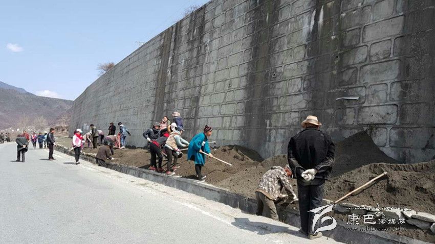 雅拉鄉(xiāng)組織村民在公路沿線開展義務(wù)種花。