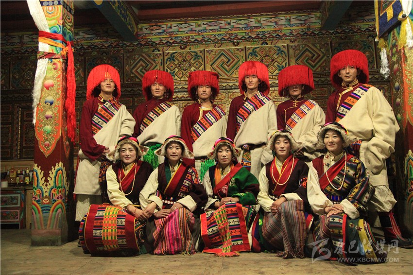 木彭措(后排左三)和康定市朋布西鄉(xiāng)木雅鍋莊隊部分演員合影。 唐闖 攝