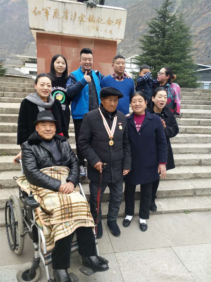 王瑞生專門帶領(lǐng)28名兒孫們前往瀘定橋紀(jì)念碑前合影,向他們講述紅軍長征這段歷史。他說得最多的一句話就是,“只有共產(chǎn)黨才能給我們帶來幸福生活,要不忘黨恩,回報社會。”老人特殊的紅軍情結(jié)感染著兒孫們,老人傳承著紅軍精神,不忘初心,永遠(yuǎn)向前。“老人身上體現(xiàn)的不向困難低頭,堅強(qiáng)不屈的精神,正是當(dāng)前開展精準(zhǔn)扶貧工作所需要倡導(dǎo)的精神,只要我們發(fā)揚(yáng)紅軍精神,就一定能夠過上好日子?!崩先说膶O子告訴記者,在老人的激勵下,現(xiàn)在家人昂揚(yáng)向上,幸福美滿。