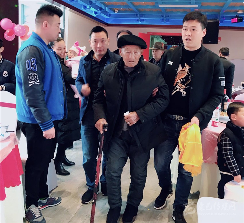 3月5日,在瀘定縣烹壩鄉(xiāng)十里香酒店,按照當(dāng)?shù)貍鹘y(tǒng),王瑞生的兒孫們提前為他隆重過百歲大壽。雖然已近百歲高齡,但王瑞生精神矍鑠,思路清晰,談吐自如,面色紅潤的他身著簡樸,胸前始終戴著2016年由中共中央、中央軍委頒發(fā)的“中國工農(nóng)紅軍長征勝利80周年紀(jì)念章”,接受親友們的祝福?!白D】甸L壽,開開心心”。親人們不絕于耳的祝福,老人心滿意足,笑容滿面?!昂?,好,我的家人團(tuán)圓和睦,家庭幸福,是我最大的心愿。”如今,老人已是四世同堂,家人濟(jì)濟(jì)一堂,親情流淌,老人幸福開懷。