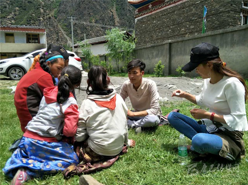 扎西拉姆帶領(lǐng)同學(xué)們做游戲。