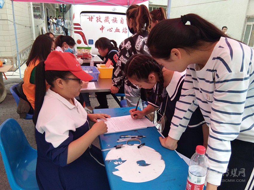 四川民族學(xué)院師生和志愿服務(wù)隊(duì)在校園內(nèi)開展無償獻(xiàn)血活動。
