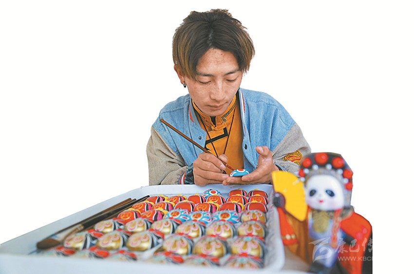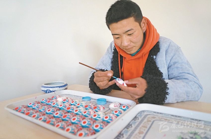 本著自主自愿的原則,教學(xué)班結(jié)束后,65名藏族青年主動(dòng)加入扶貧彩繪實(shí)訓(xùn)班,成為項(xiàng)目的第一批學(xué)員?!皩?shí)訓(xùn)期間不需要交任何費(fèi)用,還包吃住。我對畫京劇臉譜很有興趣,我們第一個(gè)月學(xué)習(xí)繪畫基本功,第二個(gè)月開始,根據(jù)成品質(zhì)量,就可以計(jì)件得酬勞,學(xué)習(xí)期間我每月能掙500多元?!壁雠f。