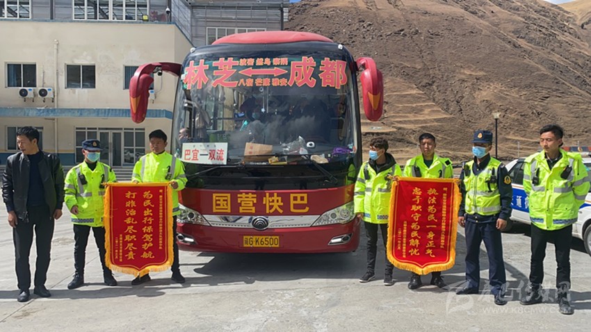 本網(wǎng)訊 近日,西藏林芝客運(yùn)公司、昌都市康巴運(yùn)業(yè)有限責(zé)任公司代表,向康定市交通運(yùn)輸綜合行政執(zhí)法大隊(duì)折西中隊(duì),贈(zèng)送了書有“執(zhí)法為民一身正氣 忠于職守為民解憂”“為民出行保駕護(hù)航 打非治亂盡職盡責(zé)”的兩面錦旗,以表達(dá)對(duì)該中隊(duì)為民服務(wù)的感激之情。