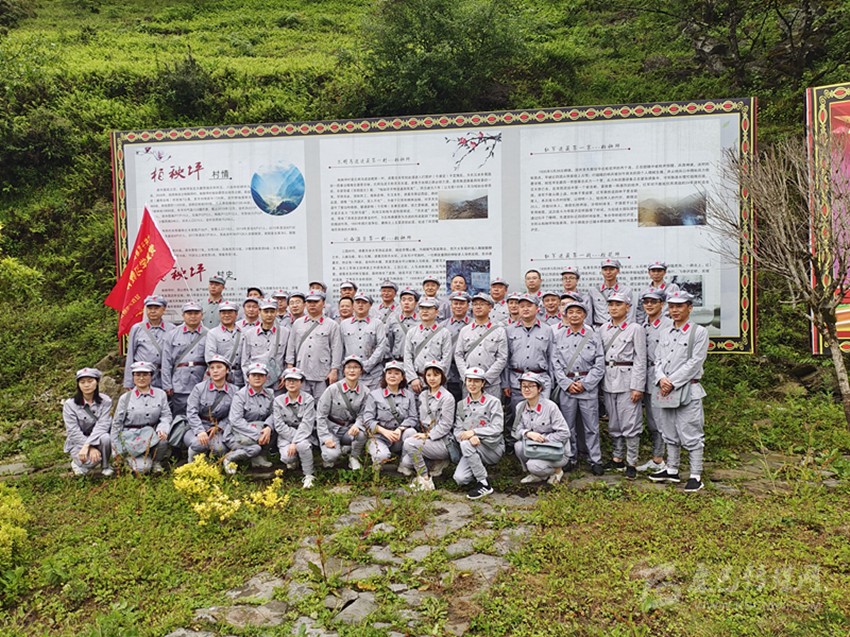 王琴帶著身穿紅軍服裝的游客行進(jìn)在“紅軍小道”上,具有川西民居建筑風(fēng)格的農(nóng)舍掩映在青山綠水間。在紅軍戰(zhàn)士泉水療傷的雕像前,一個(gè)鵝卵石壘砌的池子里,溫泉水碧波蕩漾,游客在這里體驗(yàn)泡腳,凝望著紅軍雕像,仿佛聽到了86年前的槍炮聲。