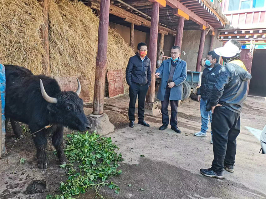 王聰(左一)邀請專家為村民講解牦牛養(yǎng)殖技術(shù)。