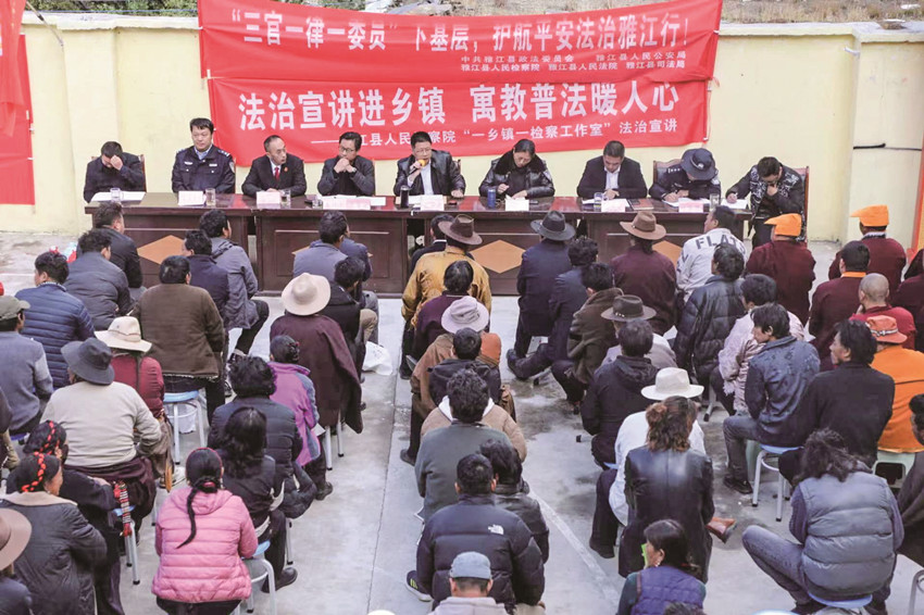 今年來(lái),雅江縣政法系統(tǒng)堅(jiān)持以習(xí)近平新時(shí)代中國(guó)特色社會(huì)主義法治思想為指導(dǎo),深入學(xué)習(xí)貫徹習(xí)近平新時(shí)代中國(guó)特色社會(huì)主義思想主題教育會(huì)議精神,秉著“基層強(qiáng)則國(guó)家強(qiáng),基層安則國(guó)家安”的原則,以“三不”(矛盾不上交、平安不出事、服務(wù)不缺位)、“三少”(矛盾糾紛、越級(jí)上訪(fǎng),到省進(jìn)京上訪(fǎng)人員減少)、“三降”(群體性事件、“民轉(zhuǎn)刑”案件、公共安全事件下降)、“三升”(群眾安全感、獲得感、幸福感上升)為目標(biāo),結(jié)合“三官一律一委員”下基層,深化新時(shí)代“楓橋經(jīng)驗(yàn)”,落實(shí)“四下基層”工作制度,在構(gòu)建新安全格局的同時(shí),大力推進(jìn)市域社會(huì)治理現(xiàn)代化工作走深走實(shí)、主題教育入腦入心。“三官一律一委員”下基層在雅江各地已悄然生根,他們宣傳法律政策、化解矛盾糾紛、關(guān)愛(ài)留守兒童、監(jiān)督違法亂紀(jì),成為了雅江縣主題教育活動(dòng)期間一道靚麗的風(fēng)景線(xiàn)。