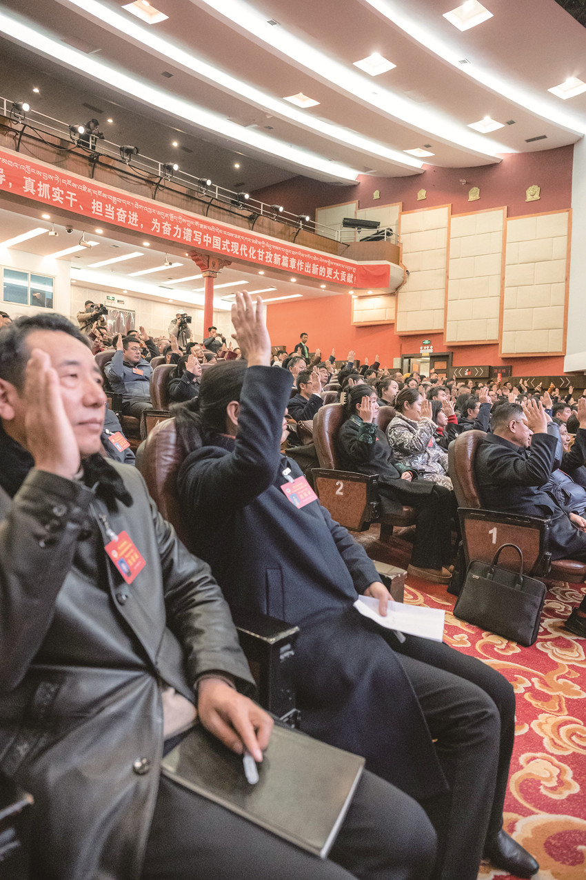 州政協(xié)委員們鄭重舉手表決通過各項報告。