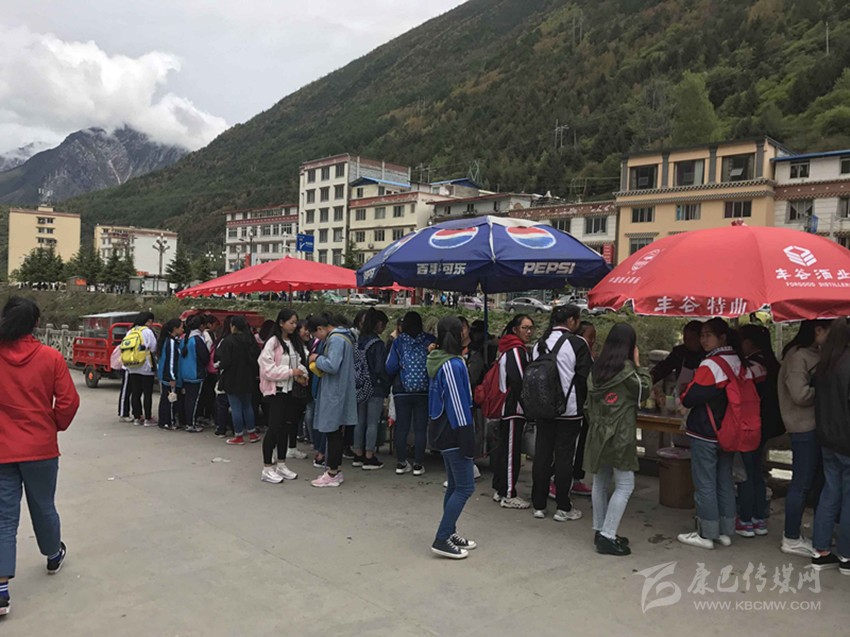 那么真實(shí)情況到底如何呢?7日,記者專門來到康定中學(xué)走訪調(diào)查。記者搭乘出租車前往學(xué)校,途中司機(jī)卻回應(yīng)“康中校門口那一段全是賣炸洋芋、炸雞腿的攤攤,車子根本開不過去,只能提前下車?!碑?dāng)記者步行過橋到達(dá)校門口路段時(shí),雜亂無序而又異常喧鬧的場(chǎng)面立刻映入眼簾。約摸十來家燒烤油炸“流動(dòng)攤點(diǎn)”上,商販們手中的烤具上下翻飛,幾十名身著“康定中學(xué)”校服的學(xué)生駐足其間,從校門出入的車輛不斷鳴笛避讓。烤面筋、炸土豆、烤雞腿,濃濃的油煙、各種調(diào)料混合的氣味、滋滋的油炸聲……儼然一副“美食街”的火爆景象。