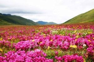 木雅圣地景區(qū)坐落于康定折多山西側(cè)的“木雅辛康”,是一座以民俗風(fēng)情與自然風(fēng)光相結(jié)合的,以體現(xiàn)藏族木雅文化為主題的專題旅游區(qū)。擁有雪山、草原、花海、河流、湖泊和木雅藏族民俗文化等眾多旅游景觀,共有5個(gè)主要景點(diǎn),“花海尋蹤”是當(dāng)年木雅公主很愛(ài)游玩之地,也是整個(gè)景區(qū)花開(kāi)得很早很茂盛的地方?!拌笠羲透!笔悄狙诺貐^(qū)享有盛名的藏傳佛教寺廟。“天界牧歌”是木雅國(guó)傳統(tǒng)的冬季放牧之地,這里牧草極為豐富?!胺鹩幽狙拧笔且粋€(gè)用經(jīng)幡制作而成的釋迦牟尼佛像?!叭悍鍑痢笔亲o(hù)衛(wèi)木雅國(guó)的一道天然屏障。