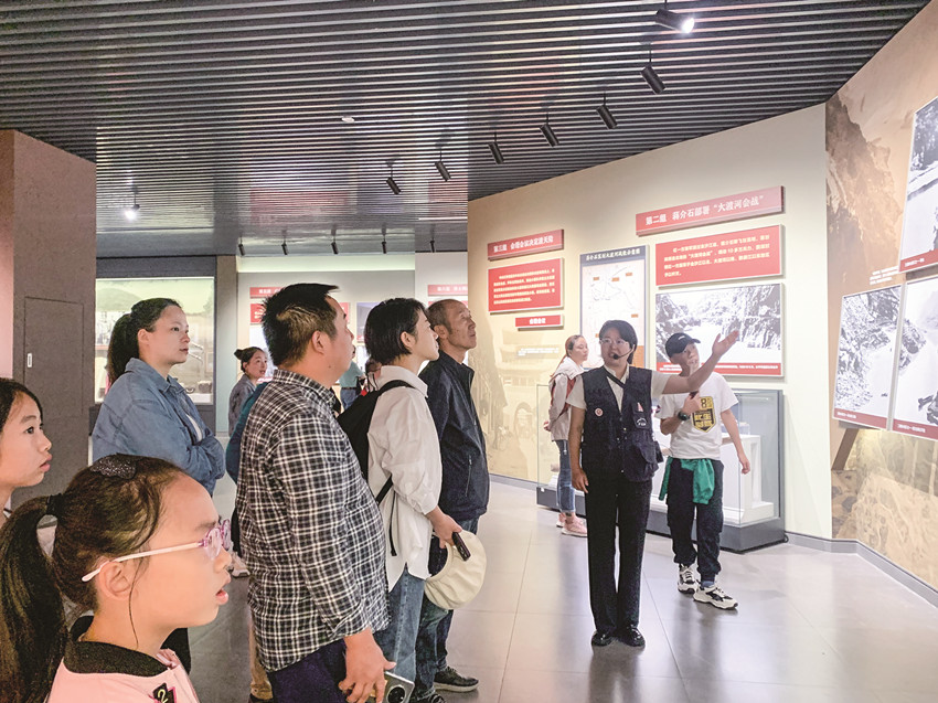 10月1日,瀘定橋游人如潮,瀘定橋革命文物陳列館和勇士路長征文化主題浮雕群周邊道路車水馬龍。游客們仔細(xì)觀看館藏文物、資料,細(xì)心聽取講解員講解,憶苦思甜,深刻體會那段跌宕起伏、波瀾壯闊的紅色歲月。隨著景區(qū)景點(diǎn)基礎(chǔ)設(shè)施的完善,不少游客滿懷激情重走長征路,懷古賞今,感受紅色文化無窮魅力。