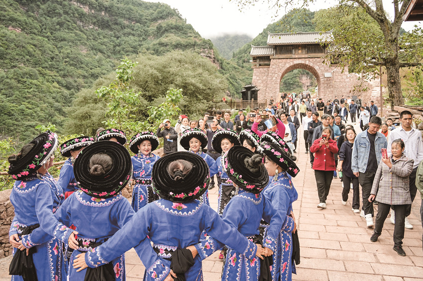 除了感受田園慢生活,嵐安古寨獨(dú)特的自然風(fēng)光也讓游客放慢了腳步。“雙節(jié)”假期,嵐安特色民宿依托優(yōu)美的自然環(huán)境和貴瓊文化,吸引了不少游客入住,游客可以住在藏寨里,品嘗特色美食、跳嵐安鍋莊、體驗推豆腐等特色民俗活動。