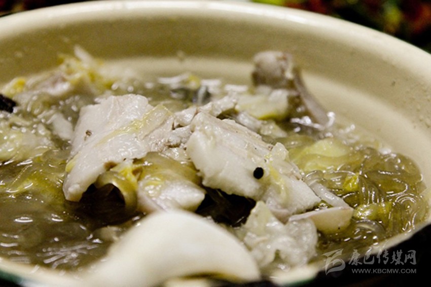 3、攪團(tuán):將清水在鍋內(nèi)燒開后,逐量撒入極細(xì)的玉米面粉,以當(dāng)年新產(chǎn)的小金黃玉米粉為佳,用竹筷攪拌,此時(shí)灶中火要猛,直到攪成糊狀,然后蒙蓋一層新鮮潔凈的芭蕉葉或青菜葉,再蓋上鍋蓋文火蒸20—30分鐘,用大碗盛起;鍋內(nèi)打油湯,燒煮酸油菜湯,其油鹽調(diào)料如一般湯羹(酸油菜即以野生油菜莖葉,洗凈,在開水鍋內(nèi)略煮一下,即撈起置于木盆或瓷盆內(nèi),趁熱壓緊覆蓋閉氣,隔夜后即成一種酸味菜,可炒食,亦可煮湯食,其味略酸而鮮美爽口,并有一種特殊香味,本地人歷來皆愛食之。