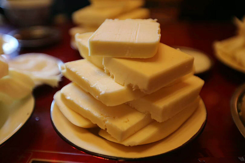 酥油是藏族民眾主要的食用油脂。藏族諺語說:“沒有駿馬的草原不美,沒有酥油的糌粑不香。”藏族民眾打酥油茶、揉糌粑都離不開酥油。據(jù)史料記載,文成公主入藏時,帶去了內(nèi)地的茶葉,公主“使乳變成奶酪,從乳取酥油”,有了茶和酥油,才有了酥油茶。