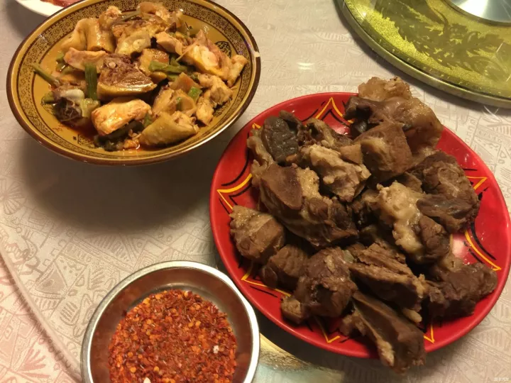 藏族同胞好將牛羊肉大塊入鍋大火煮之,剛過(guò)心則撈起。吃時(shí)手抓刀削入口,謂之手抓砣砣內(nèi)。冷熱食皆佳,肉嫩味鮮?,F(xiàn)在迎合大眾口味,有些用炒,有些用烤,蘸著海椒面,味道簡(jiǎn)直美味極了。