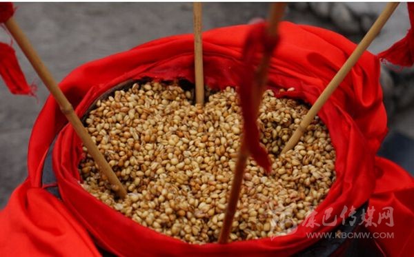 嘉絨語稱“恰鹵”。咂酒是青稞釀制而成的。首先取一定數(shù)量的青稞粒,一般5斤、8斤或10斤,在大鐵鍋中用水煮成八成熟后,放在簸箕里晾開,待冷卻后放上一定比例的酒曲,合勻,又裝入大鐵鍋中發(fā)酵三至四天,待聞到酒香味后,裝入壇中并加水,放置一天以上后,即可取汁食用,這個(gè)汁就是咂酒。咂酒味甘甜淳厚,十 分爽口,看似不醉人,但有的甘甜之中略帶苦澀,說明酒勁足,不勝酒力者應(yīng)少飲為宜。曾有人寫《飲咂酒詩》說:“成石雜糧一甕收,王侯到此也低頭,五龍抱住 撐天柱,咂盡黃河水倒流”。充分展示了咂酒的魅力和飲咂酒的那種愜意。境內(nèi)巴底、半扇門的上半鄉(xiāng)、太平橋鄉(xiāng)一帶的群眾喜愛煮咂酒,平日,家家都備有咂酒,親朋間禮尚往來、人情世故都送咂酒。喝咂酒是當(dāng)?shù)氐囊淮罅?xí)俗?!墩鹿韧椭?略)》記載了清朝后期宅壟土屯區(qū)的飲食習(xí)俗時(shí)說:“夷人(封建統(tǒng)治者對藏族的貶 稱)寨中置巨甕或木桶,富者大銅瓶盛酒,于內(nèi)植竹竿十余枝,跌坐于地互相吸飲,不杯杓勸酧(酬),無餚核(指熟食的魚肉干果),惟各布豬膘、牛肉、‘得木 鳥’(火燒子饃饃),醉飽而散”?,F(xiàn)在,巴底鄉(xiāng)、半扇門的上半鄉(xiāng)、太平橋鄉(xiāng)的大多數(shù)村寨仍然保留著這些習(xí)俗。在節(jié)日或慶典之時(shí),在大壩子中間放一個(gè)大的壇子或木桶,里面盛滿含有酒糟的咂酒,然后插入麥桿數(shù)根,眾人圍個(gè)大圓圈跳鍋莊,口渴時(shí)依次吸之;或一人手持葫蘆,里盛咂酒,在眾人中依次轉(zhuǎn)之;或眾人盤腿 圍坐,傳一壺咂酒,稱喝“轉(zhuǎn)轉(zhuǎn)酒”。