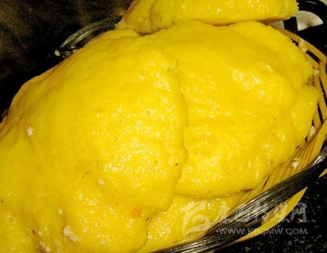玉米饃是爐城平常人家常食的,就是許多做小生意開小攤鋪,常蒸食玉米饃。雅安人彭大春夫婦,早年曾在康定幫人干活,夫婦善做小吃。爐城大米昂貴,知爐城愛吃玉米,又愛吃“焦粑”(一種以面粉起酥肉餡炕餅的小吃)習慣,用金鉤鮮肉做餡,仿效“焦粑”的做法,用上等玉米面,創(chuàng)造出玉米面包金鉤炕餅,以其香、咸酥、脆味長誘人,食者排隊購買,風行一時。