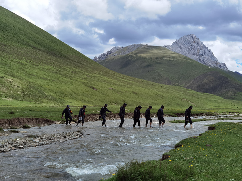 護(hù)林隊跋山涉水進(jìn)行日常巡護(hù)。