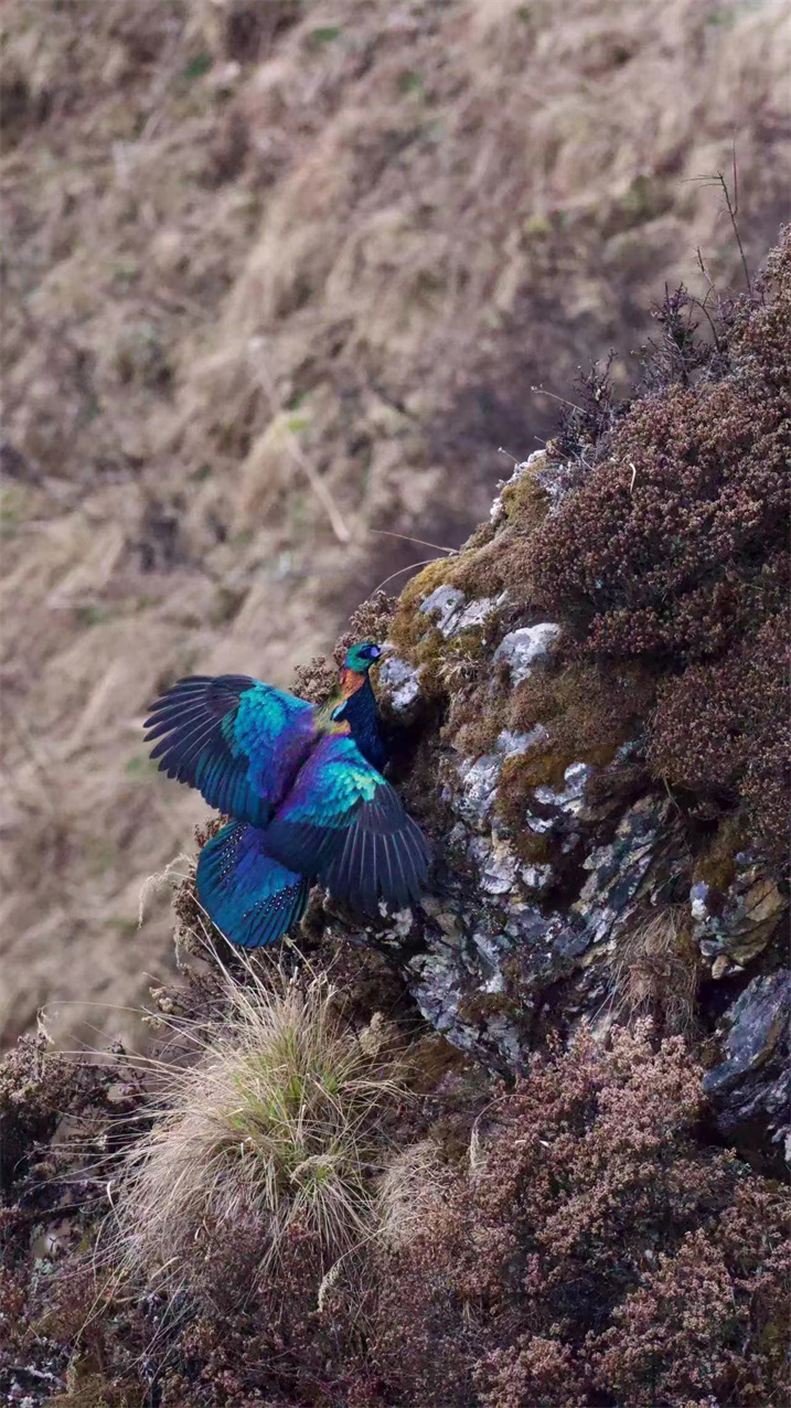本網(wǎng)訊 日前,筆者跟隨中國綠發(fā)會鳥類生物多樣性保護(hù)研究院院長、世界生態(tài)組織鳥類生態(tài)專委會主任艾雅康一行來到海拔4500米的九龍縣洪壩鄉(xiāng)羊圈門村神山牛場,經(jīng)過3晝夜的蹲守,終于拍攝到了國家一級保護(hù)動物有著“蜀山彩虹”“鳥中大熊貓”之稱的綠尾虹雉。
