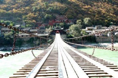 瀘定橋簡介瀘定橋坐落在瀘定縣城大渡河上,為全國重點(diǎn)文物保護(hù)單位。該橋始建于清康熙44年,建成于45年(1706年)??滴跤P題定“瀘定橋”,并立御碑于橋頭。